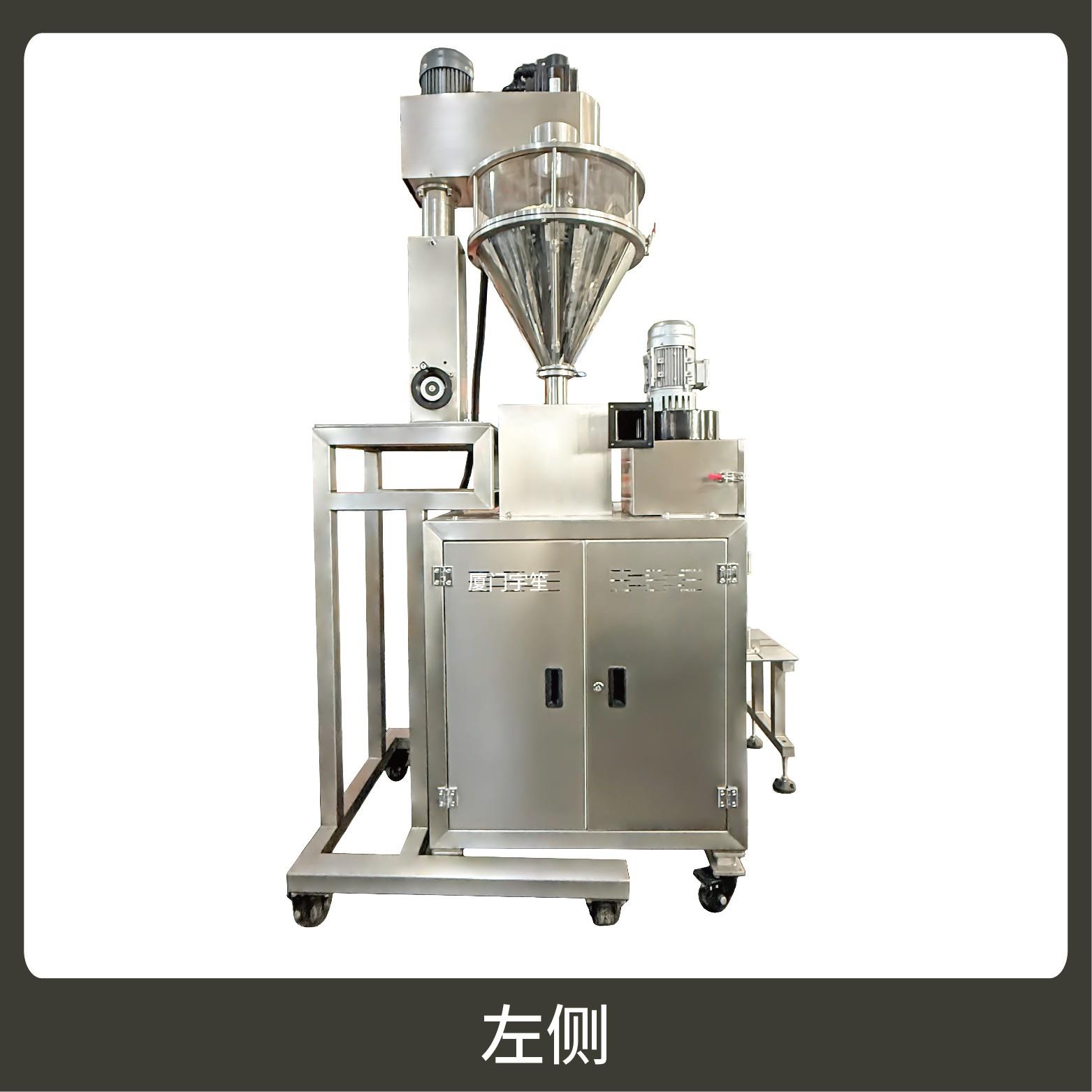 2、包裝流程全自動,無需人工操作。可根據(jù)充填物料的性質(zhì)選配不同的下料結(jié)構(gòu),機器占地面積小,操作簡單。